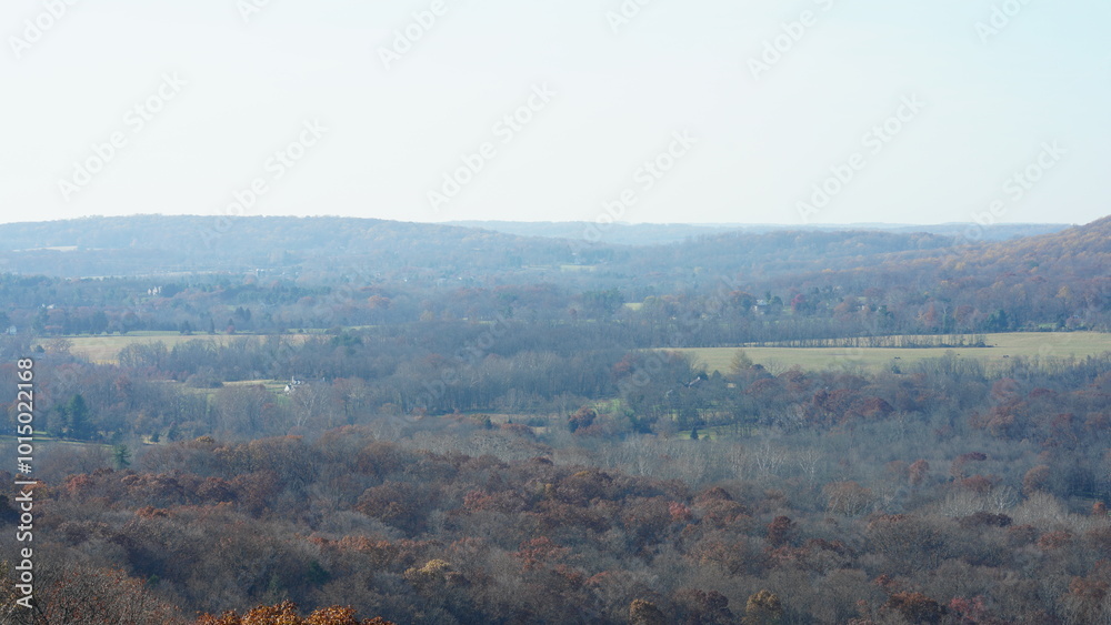 The colorful forest view in the natural park in autumn