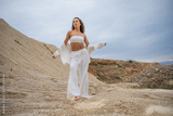 Full length portrait of a young woman posing in the Padovskiy quarry