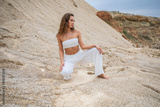 Full length portrait of a young woman posing in the Padovskiy quarry