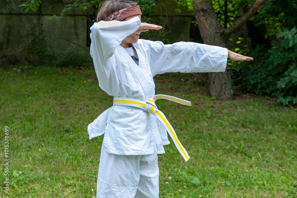 white-yellow belt, child athlete in judo uniform, dedication and strength in martial arts, martial arts training, physical fitness