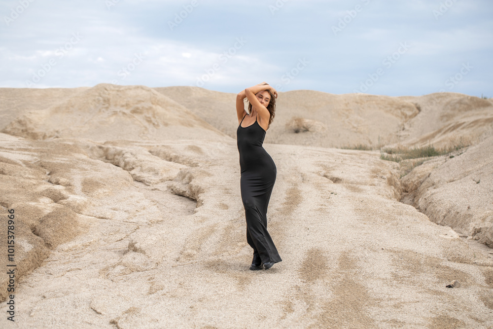 Fashion portrait of a young beautiful model in black dress