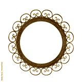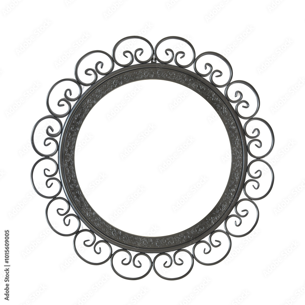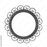 Elegant circular and arched wrought iron mirror frame illustration with ornamental floral motifs. Perfect for vintage-style design, wedding invitations, or home decor templates.