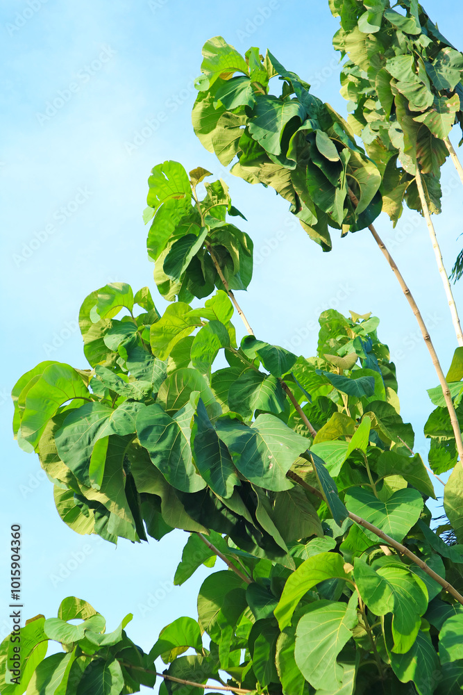 Vibrant Green Teak Tree Foliage in the Sunlight