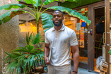African cheerful entrepreneur standing outside coworking building