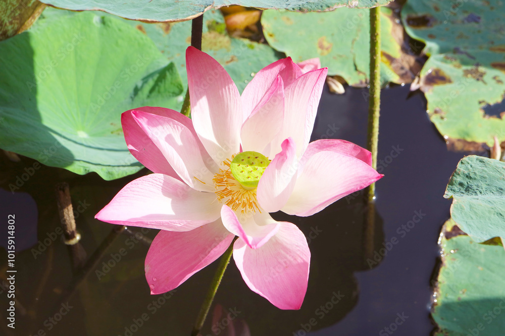 Closeup of Stunning Sacred Lotus Blooming in the Sunlight