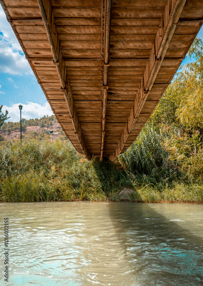 Wooden bridge over the Segura River. Cieza. Murcia. Spain.