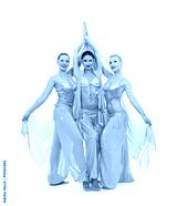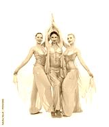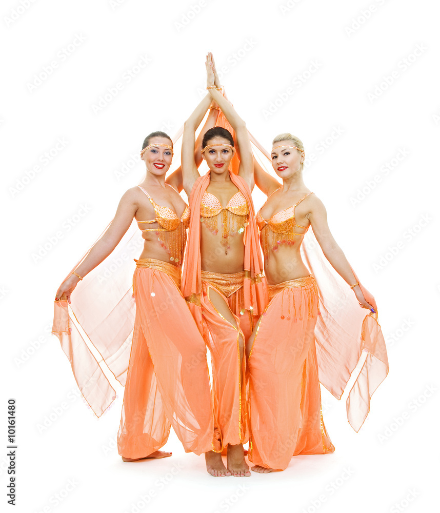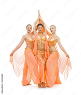 young trio dancing arabian dance. isolated on white