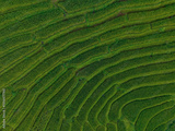 Green rice terraces. Lush agricultural landscape with terraced paddy fields. Nature's beauty in rural Asia. Scenic view of organic farming, perfect for travel destinations and environmental concepts.