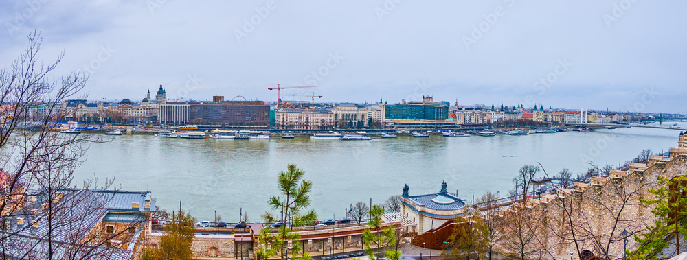 Panorama of Pest district and Elisabeth Bridge, Budapest, Hungary