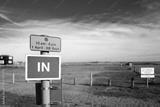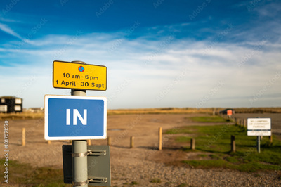 Shallow focus of the entrance to a large coastal car park in east anglia, uk. The car park is known to flood during a spring tide.