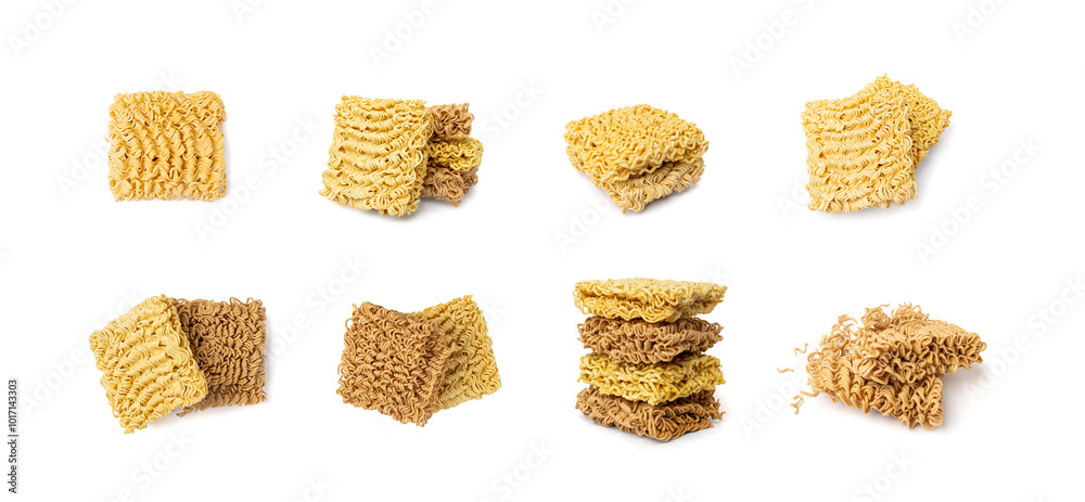 Raw Instant Rye Noodles Isolated, Dry Ramen Noodle, Uncooked Korea Vermicelli, Fast Chinese Pasta