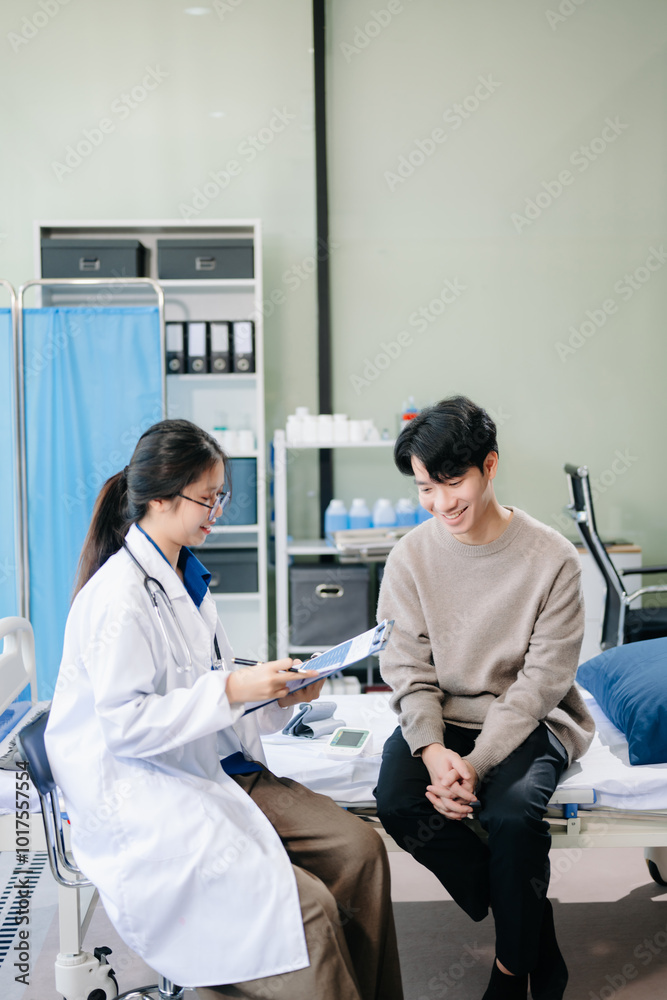 Doctor examining patient with symptoms in a clinic. Medical consultation and healthcare interaction.