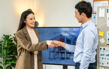 Shaking hands, negotiation and deal in meeting or casual, agreement for business contract or onboarding. Greeting, palms and together for hiring or welcome, collaboration or teamwork with thank you