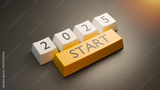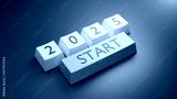 Start 2025. Buttons with next year number. Keyboard with numbers 2025. Banner for happy new year. Start of next season concept. 2025 logo. New year template in minimalistic style. 3d image