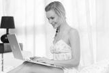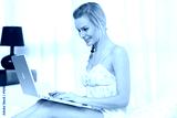 Pretty woman using her laptop in bed