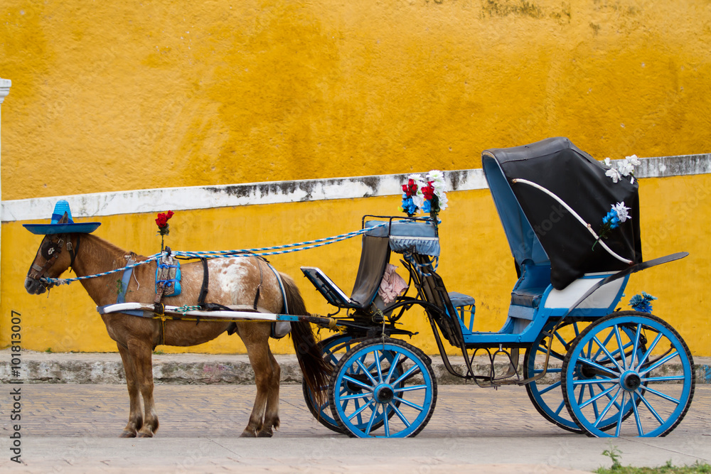 horse carriage in izamal in mexico