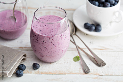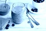 Blueberry banana smoothie in a glass