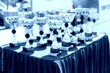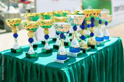 Victorious cups in sports meets. Cups of winners. Trophy cups.