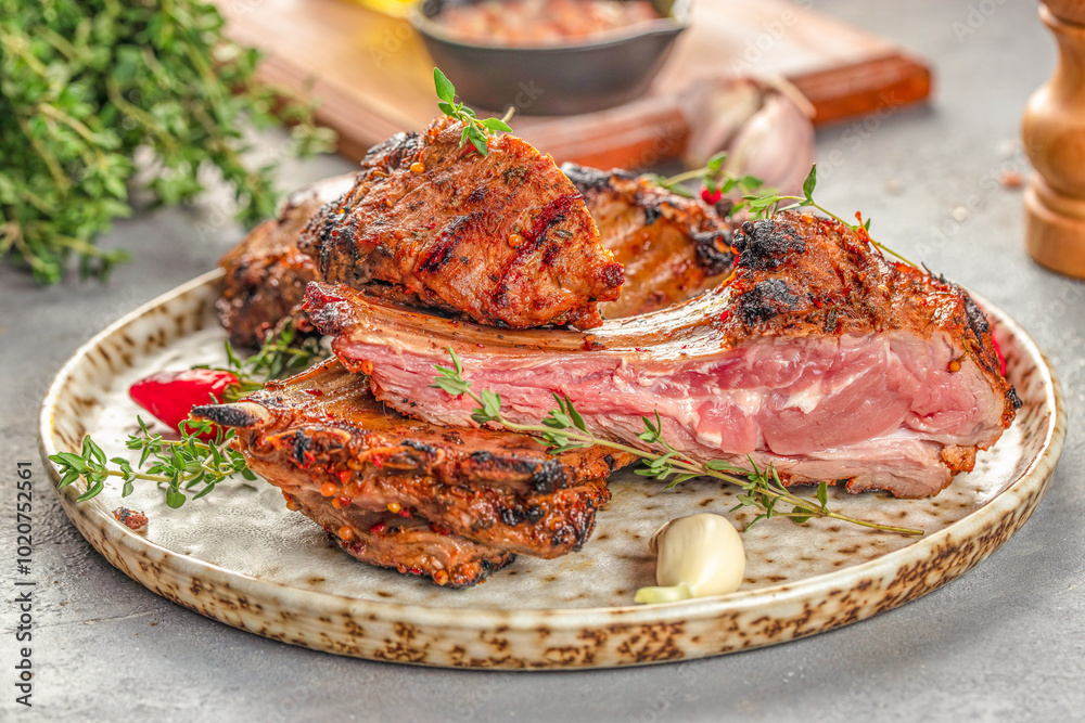 Grilled Lamb Chops on plate. menu, dieting, cookbook recipe