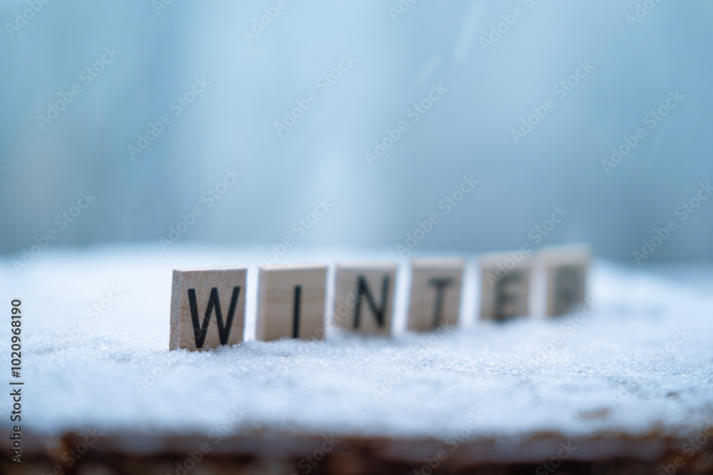 heavy snowfall, wooden letters on snow-covered tree stump, seasonal changes, winter weather conditions and snowfall, Nature and Environment
