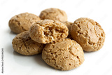 Heap of Italian amaretti biscuits isolated on white in perspect