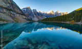 Moraine lake panorama in Banff National Park, Alberta, Canada