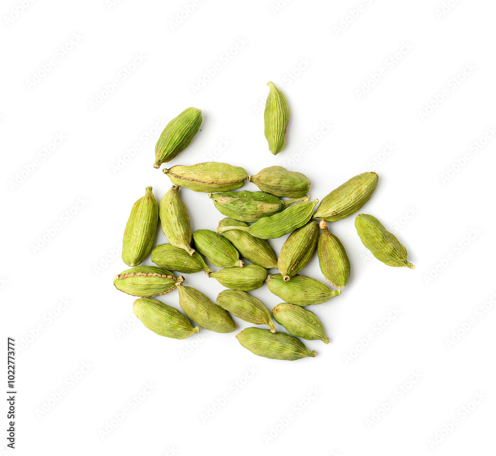 Cardamom Isolated, Green Cardamon Seeds, Dry Kardamon, Cardamum Spice , Genera Elettaria Beans
