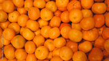 Mandarins on fruit market, ripe tangerines as background top view