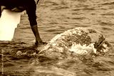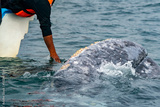 Hand petting caressing a grey whale in bahia magdalena baja california sur mexico