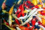 Koi in the pond,Japan koi fish or Fancy Carp swimming in a black pond fish pond. Popular pets for relaxation and feng shui meaning. Popular pets among people. Asians