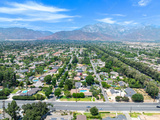 Aerial view of Upland city in San Bernardino County, California, on the border with neighboring Los Angeles County.