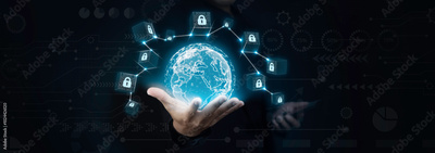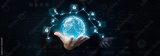 Businessman showing Decentralized Global Networking, Secure Transactions, Transparency, Efficiency. Innovating Smart Solutions from Digital Technology. Blockchain Technology Concept.