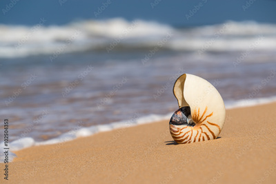 Sea shell on the sandy beach on tropical island