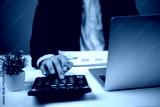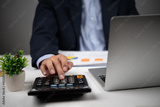 A businessman uses a calculator to perform financial calculations or budget planning.