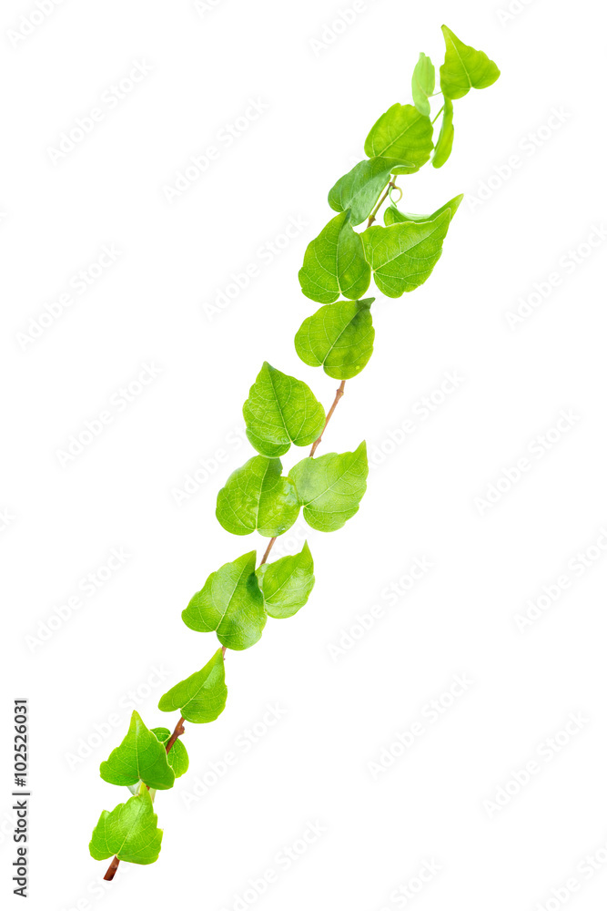 beautiful green twig of straight ivy is isolated on white backgr