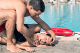 Lifeguard rescue procedure - positioning victim to her side, ensuring breathing is unobstructed