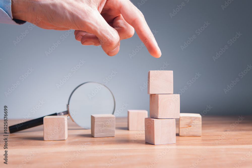 businessman hand holding a wooden figure of the game of business, strategy concept