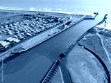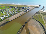 Aerial view of River Blyth between Walberswick and Southwold on the Suffolk coast. The Walberswick rowing boar ferry is based here.