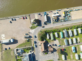 defaultDrone photography of a holiday park near an inland waterway on the Suffolk coast. Car parking and a lifeboat station can be seen.