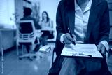 Professional employer reviews a job applicant's resume during an important interview, analyzing qualifications and skills for a potential match