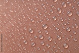 Water drops on brown background, top view