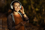 happy modern 40 years old woman in fitness clothes in park
