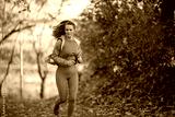 modern female in fitness clothes in park running