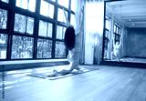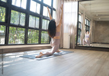 Female happiness Attractive young asian woman doing yoga stretching exercise on mat yoga & fitness exercises. Healthy lifestyle Calmness and relax