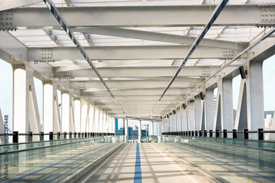 Building cross bridge Steel construction Walkway in perspective with escalator