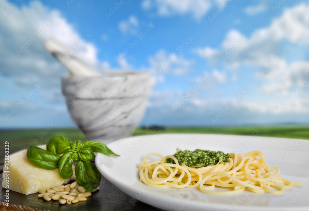 Spaghetti al pesto (