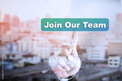 Businessman hand touch screen graph on Join Our Team. Can be used for your ad.