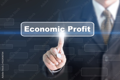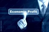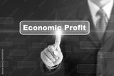 Businessman pressing a Economic Profit concept button. Can be used in advertising.