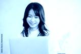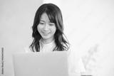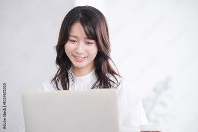 Close-up of a young woman at work looking at a computer Image of work, job hunting, changing jobs, etc. Copy space on the right
