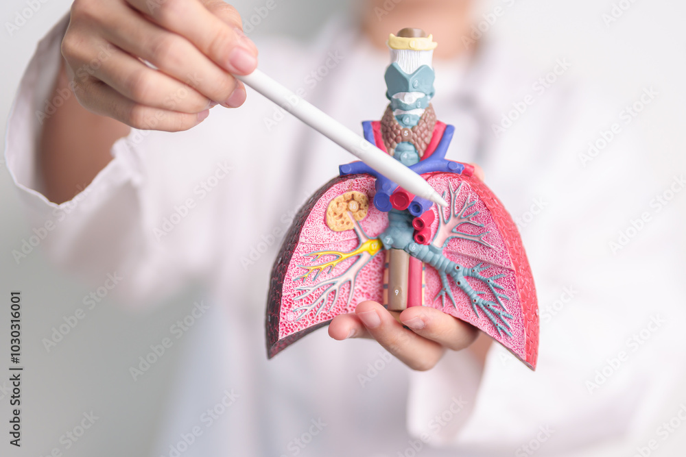Doctor with Smoker and normal Lung anatomy for Disease. Lung Cancer, Asthma, Chronic Obstructive Pulmonary or COPD, Bronchitis, Emphysema, Cystic Fibrosis, Bronchiectasis, Pneumonia and world Lung day